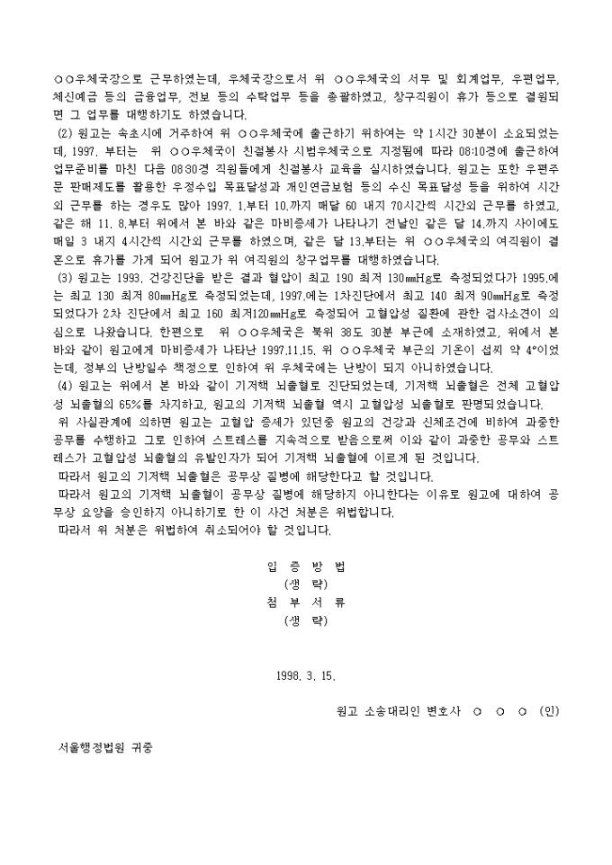 9,000원/월공무원연금관리공단의 처분에 대하여 요양불승인처분을 취소청구하는 소장 양식입니다.