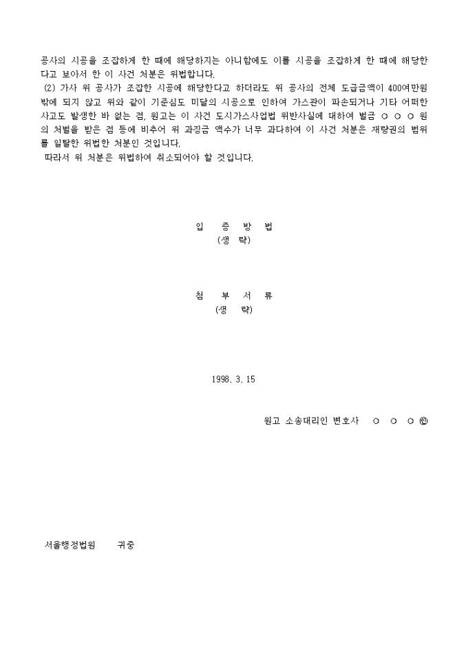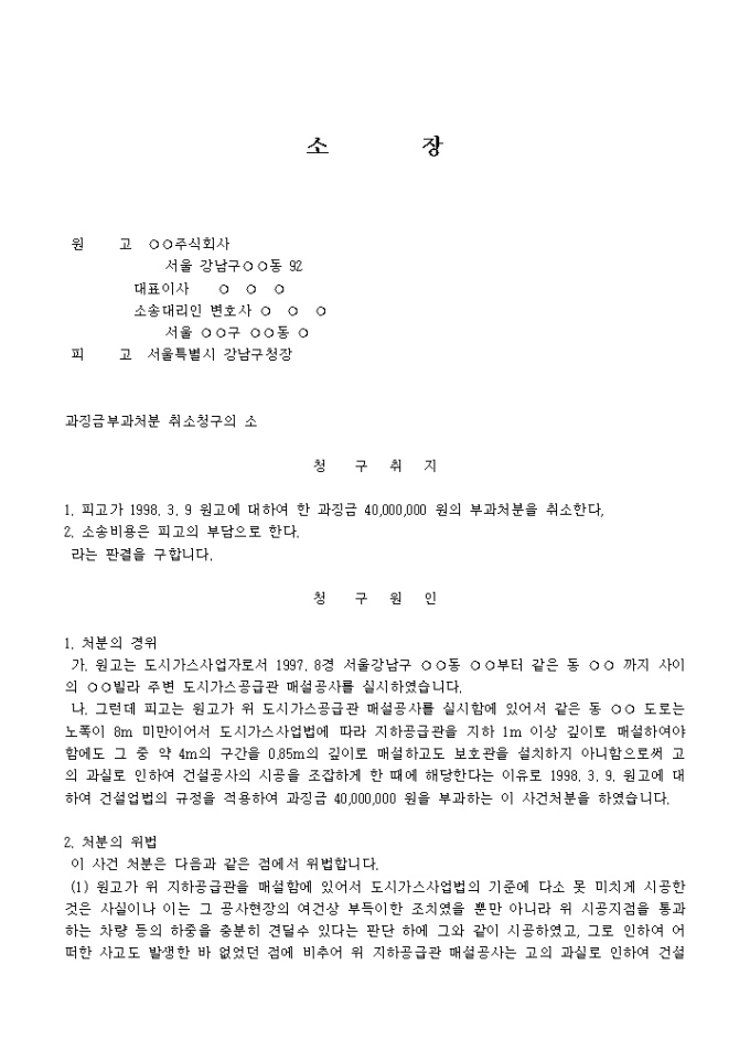 과징금부과처분 취소청구의 소장양식입니다.