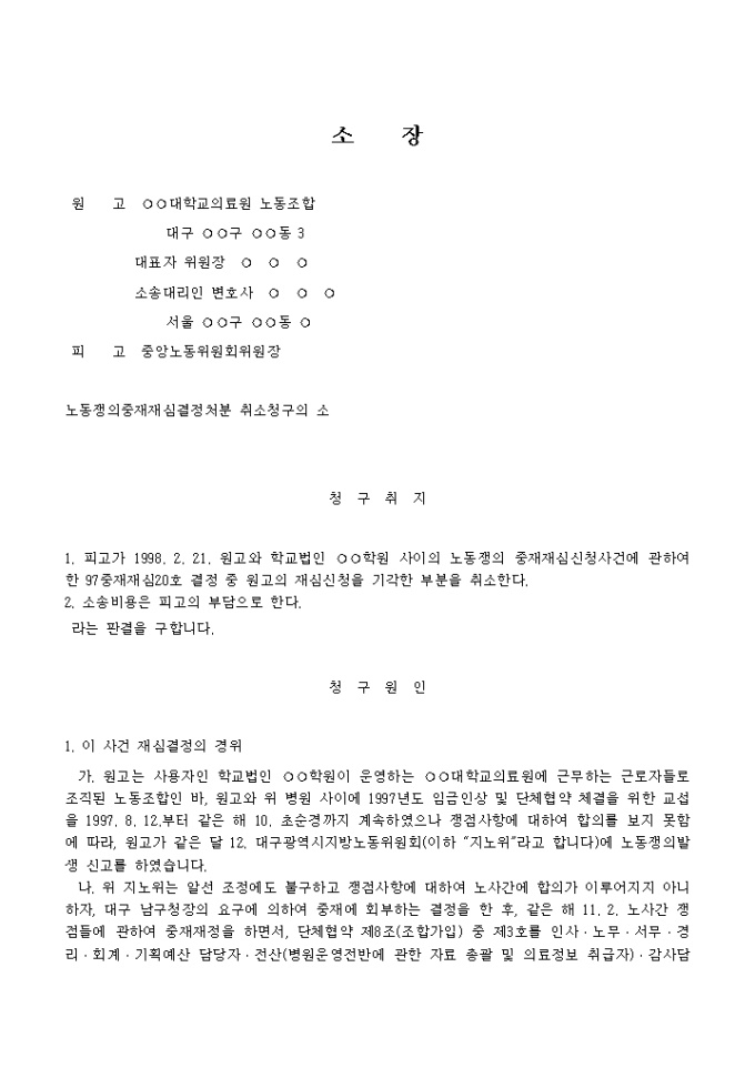9,000원/월노동쟁의중재재심을 다투는 소장양식입니다.