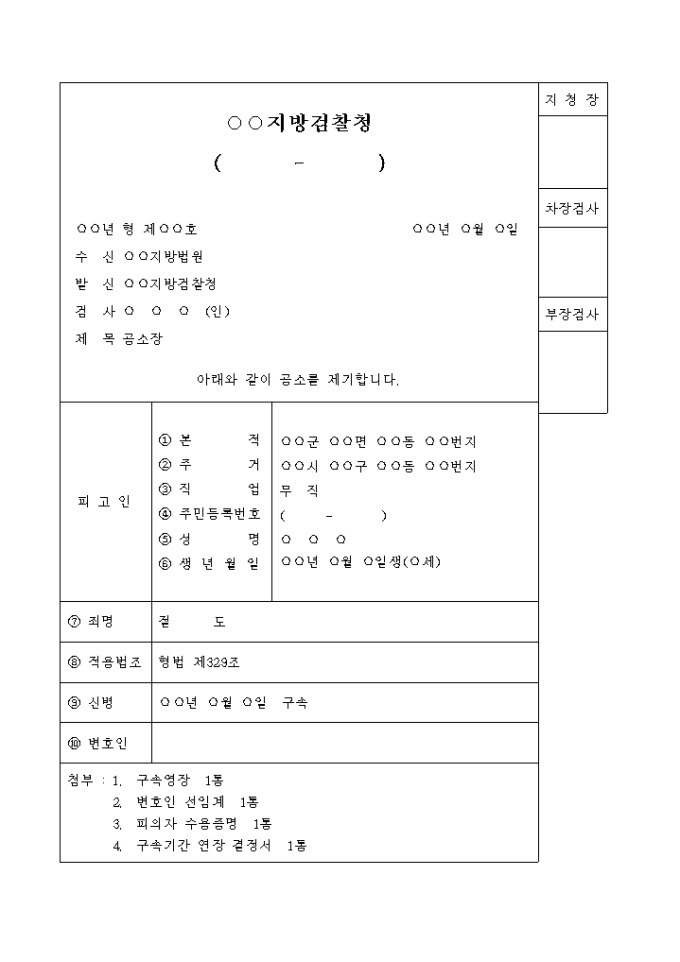 공소장(절도) 입니다. 수 신 지방법원 발 신 지방검찰청 제 목 공소장 검 사 (인) 아래와 같이 공소를 제기합니다. ...