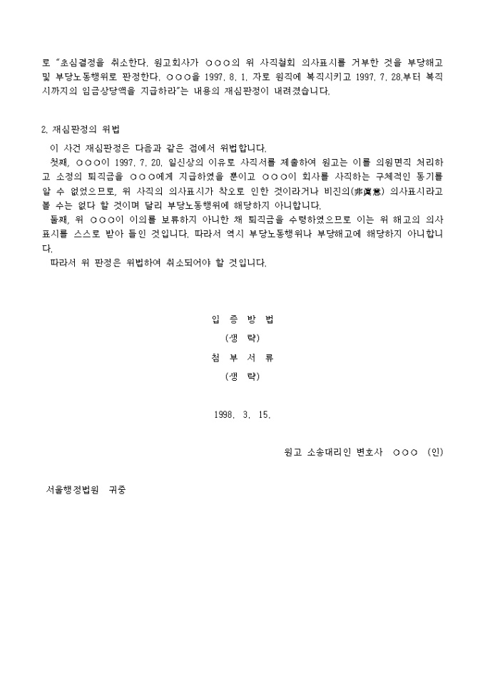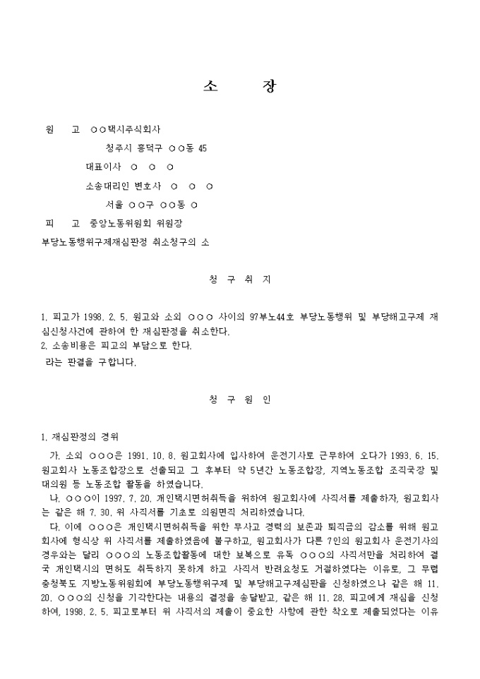 9,000원/월부당노동행위나 부당인사처분을 다투는 소장(사용자 청구)양식입니다.