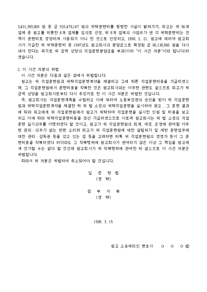 직업훈련분담금부과처분 취소청구의 소장양식입니다.