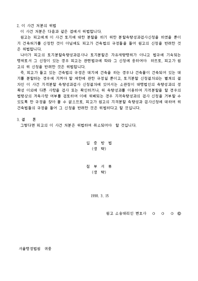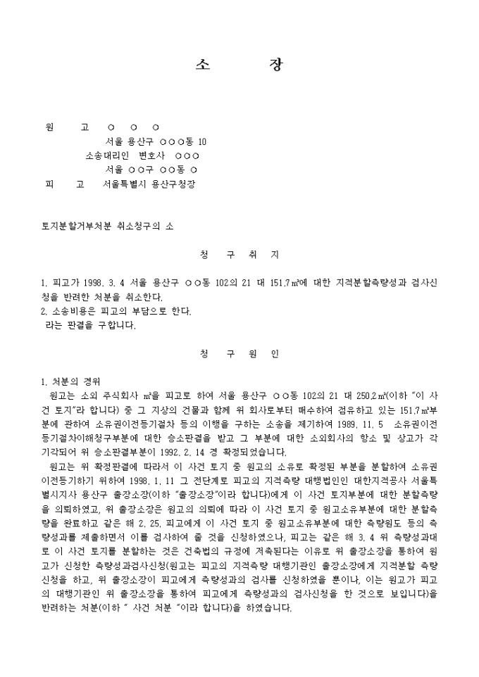 9,000원/월토지분할거부처분 취소청구의 소장양식입니다.