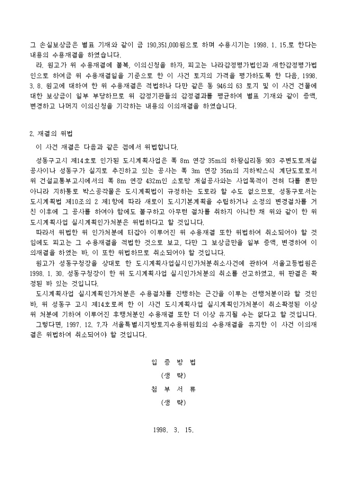 9,000원/월토지수용의 이의재결을 다투는 소장(보상금의 증감이 아니라 수용재결의 적법성을 다투는 소장)양식입니다.