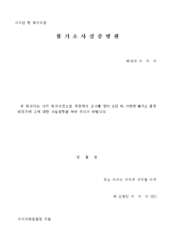 불기소 사실 증명원
