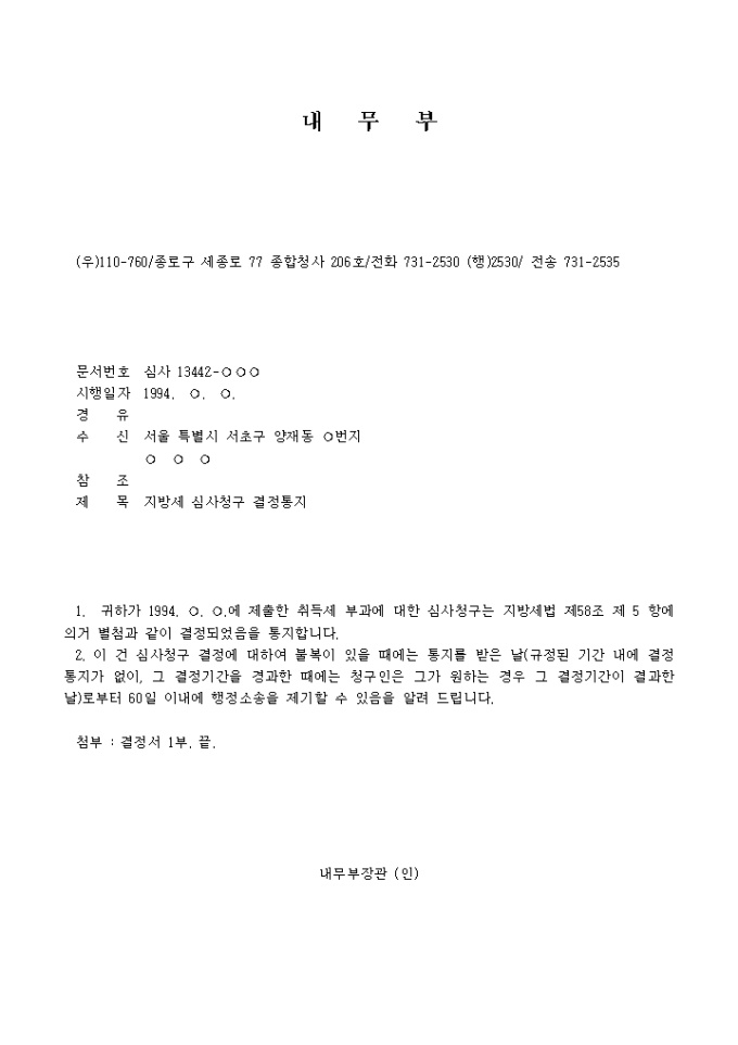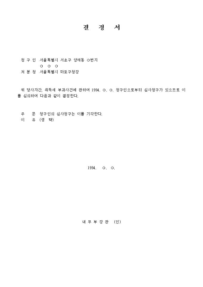 심사청구에 대한 결정(내무부)