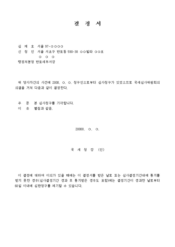 9,000원/월심사청구에 대한 결정문 양식입니다.