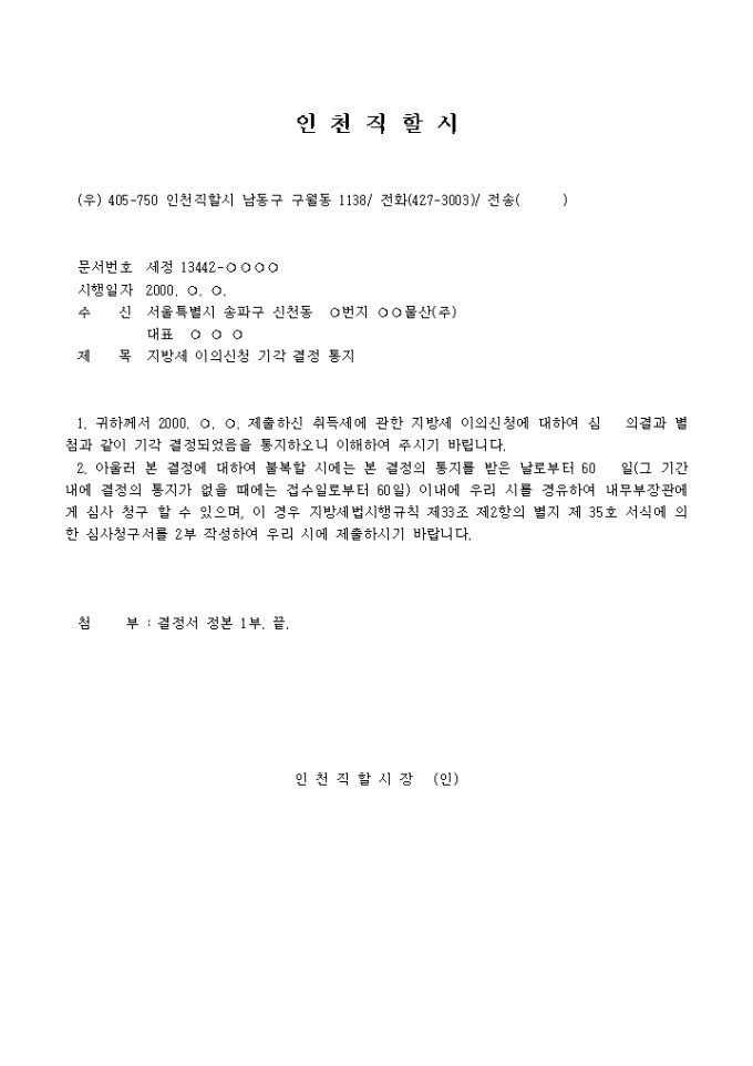 결정내용 : 당사자간 취득세 부과 사건에 대하여 이의신청이 있으므로 이를 심의하여 기각한다.