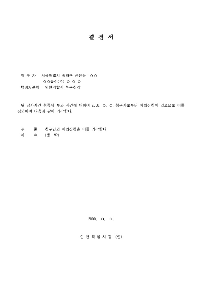 결정문 양식입니다.