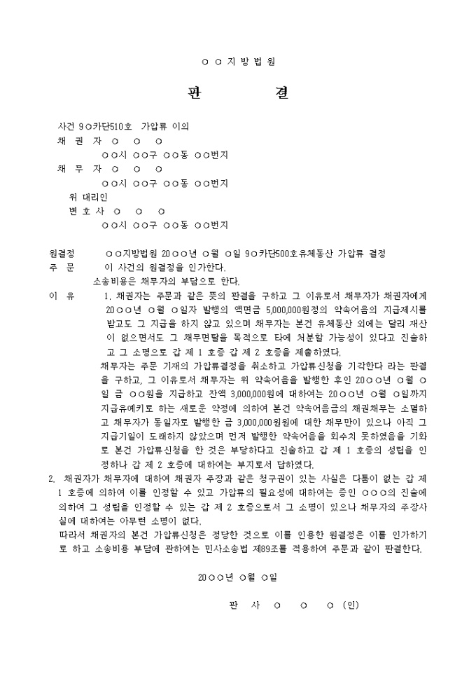 가압류이의신청에 대한 원결정인가결정서 예제 입니다.