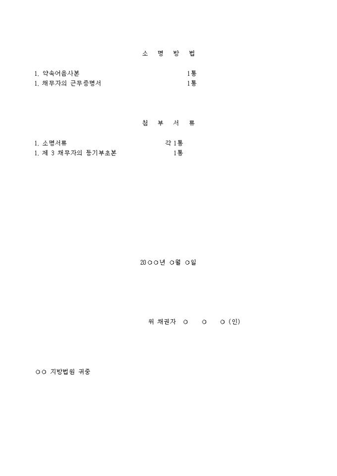 1. 채무자는 채권자에게 20 년 월 일 금 만원, 만기 동년 20 년 월 일 은행 지점 지급으로 된 약속어음을 발행하였으므로 채권자는 만기에 지급장소에 위 어음을 제시하였으나 부도되었다.