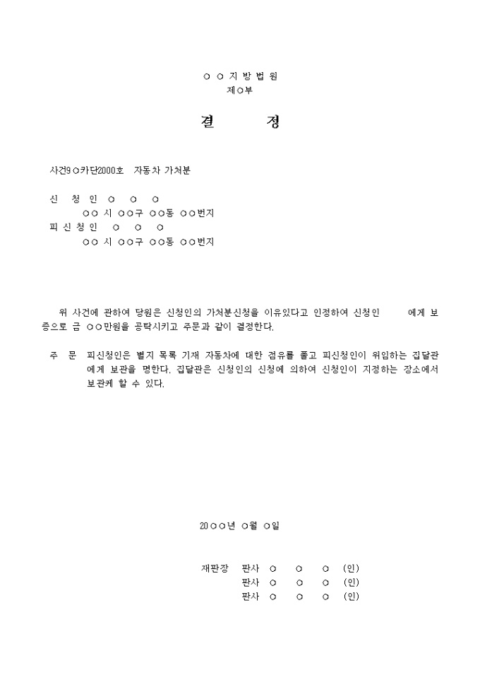 9,000원/월자동차인도 가처분결정 예제 입니다.