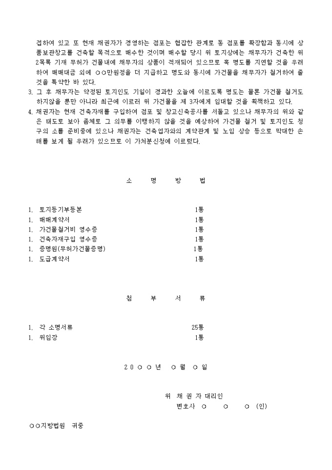 건물철거 및 토지명도단행 가처분신청서 예제 입니다.