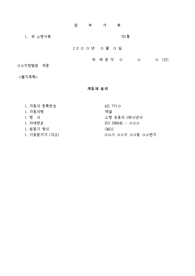 자동차점유이전금지 가처분신청서
