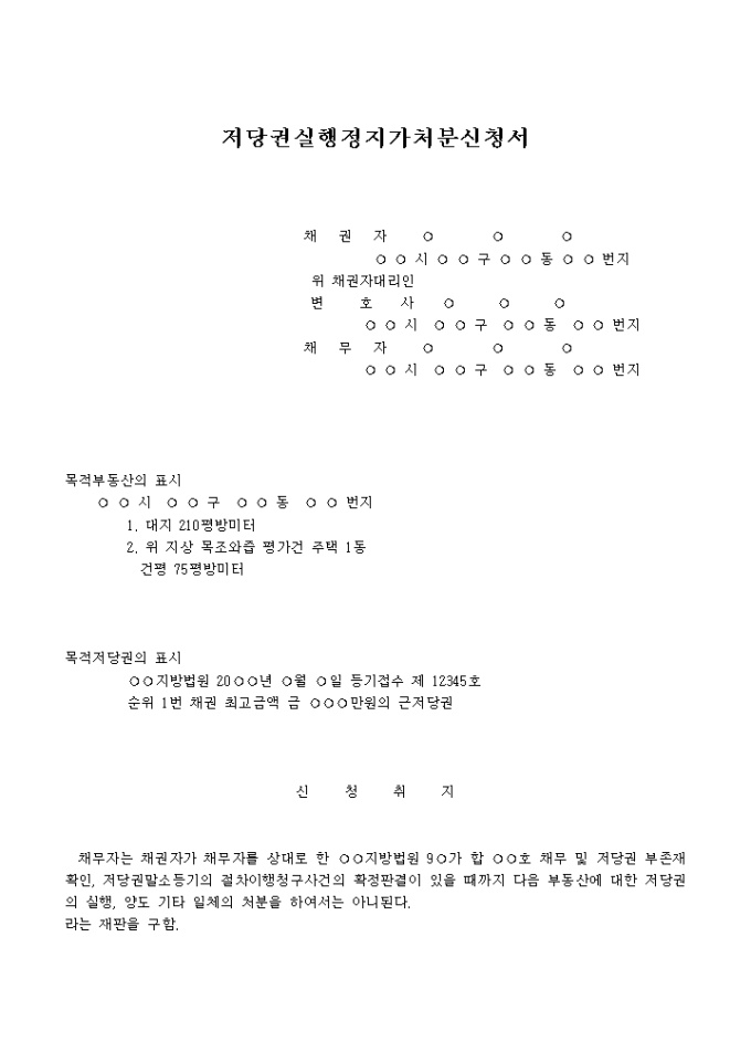 저당권실행정지 가처분신청서 예제 입니다.