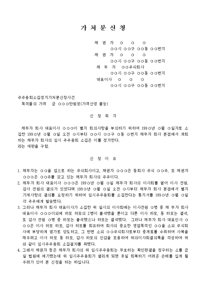 9,000원/월주주총회 소집정지 가처분신청서(임시주주총회 무효확인청구) 예제 입니다.