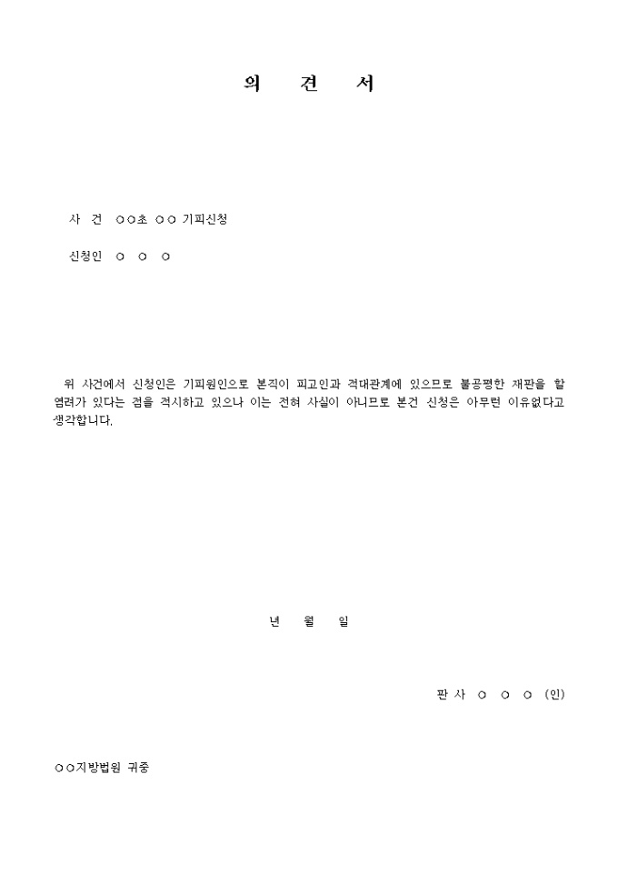 기피신청인에 대한 법관의견서