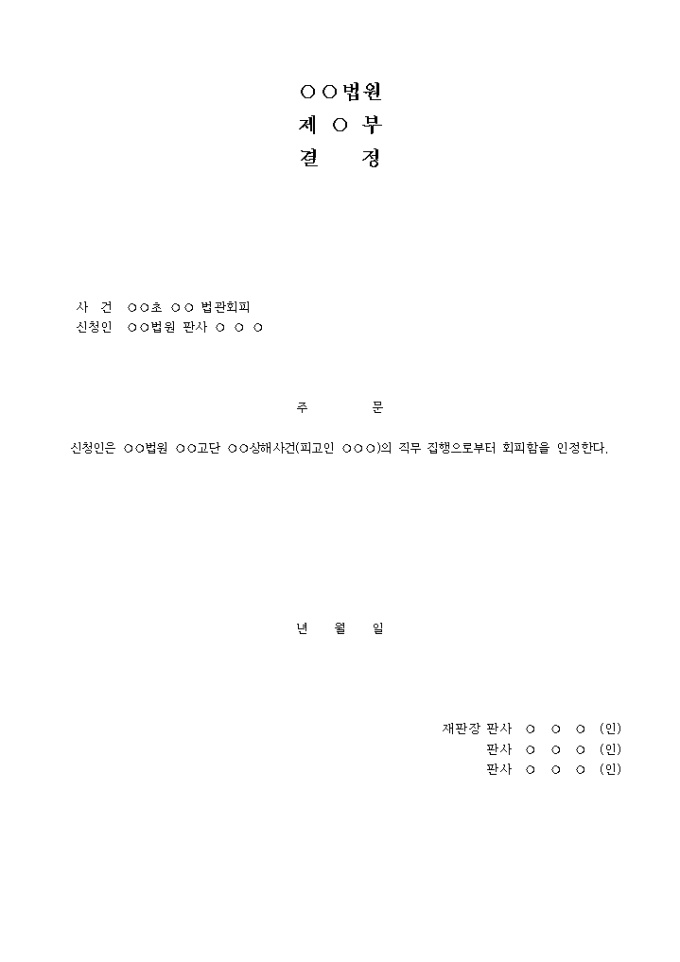 9,000원/월법관에대한법원의회피결정서식 입니다.