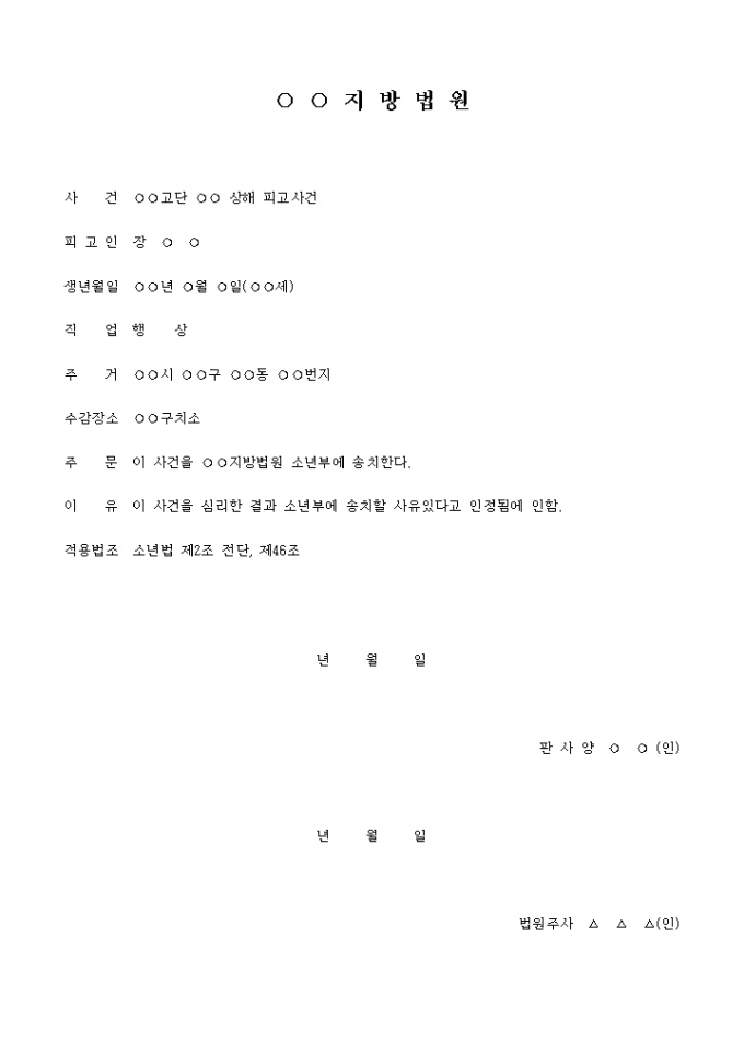 주 문 이 사건을 지방법원 소년부에 송치한다.