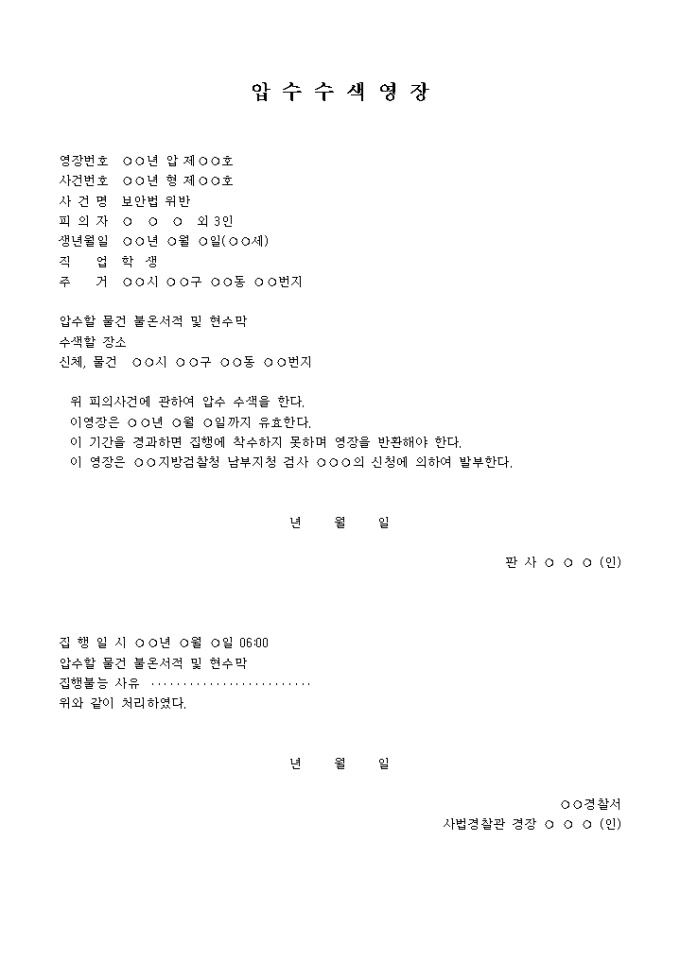위 피의사건에 관하여 압수 수색을 한다.