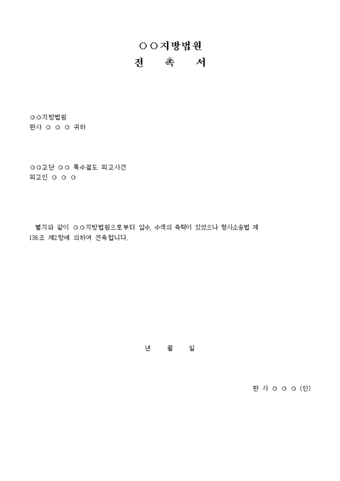 별지와 같이 지방법원으로부터 압수, 수색의 촉탁이 있었으나 형사소송법 제