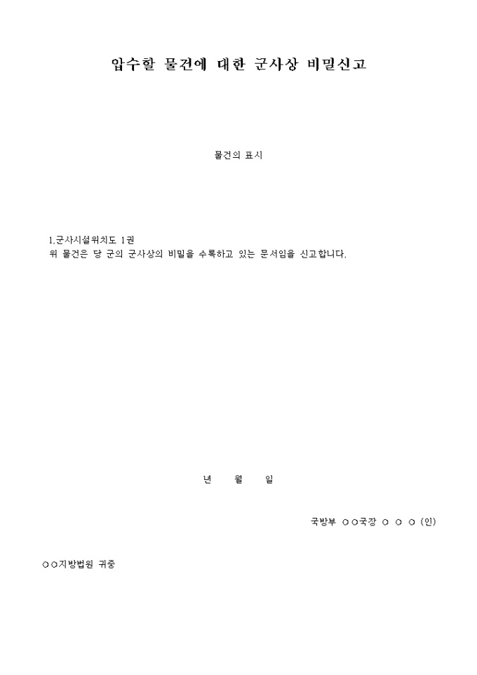 위 물건은 당 군의 군사상의 비밀을 수록하고 있는 문서임을 신고합니다.