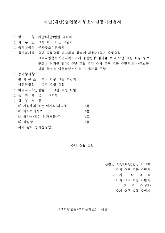 9,000원/월분사무소이전을 위한 사단(재단)법인분사무소이전등기신청서양식입니다.