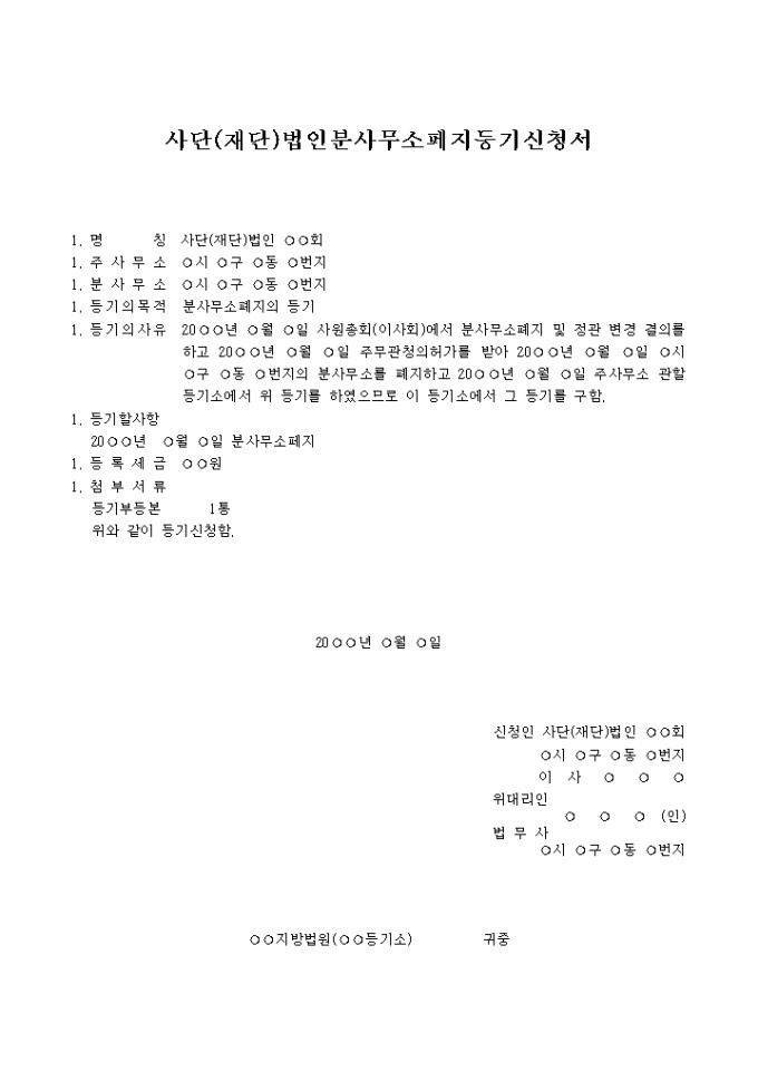 9,000원/월분사무소폐지를 위한 사단(재단)법인분사무소폐지등기신청서양식입니다.