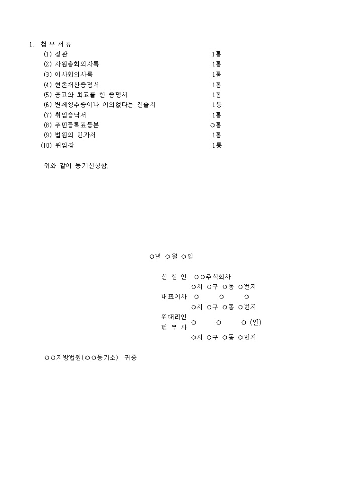 주식회사 설립등기 신청서