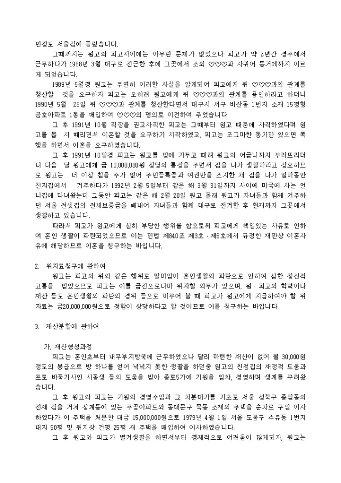 이혼청구 등과 병합청구한 경우의 재산분할 심판 청구서 양식입니다.