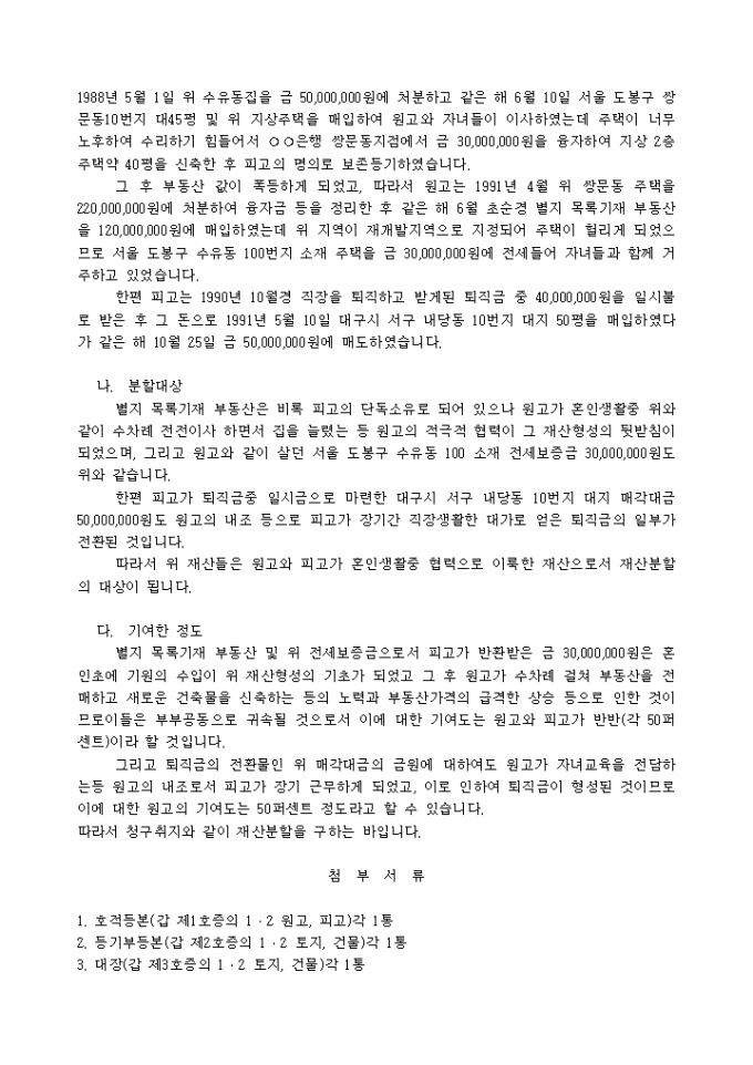 재산분할심판청구서(배우자의 폭력으로 인한)