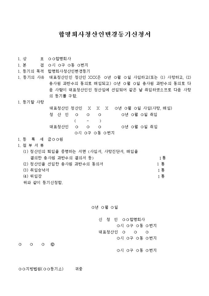 합명회사청산인 변경등기신청서