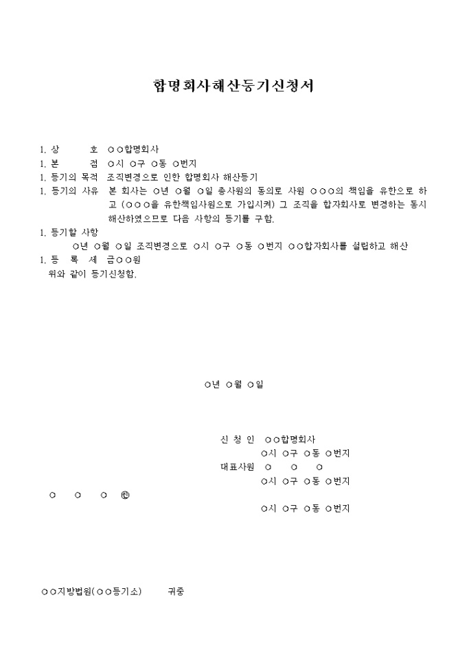 합명회사해산 등기신청서