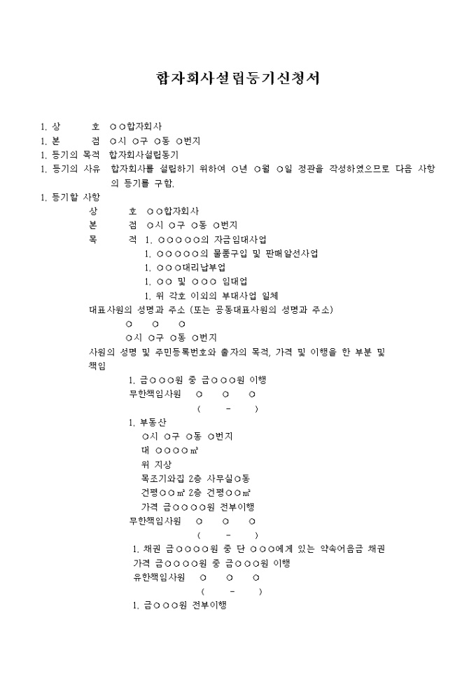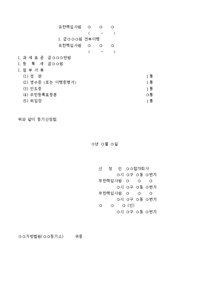 합자회사 설립 등기신청서