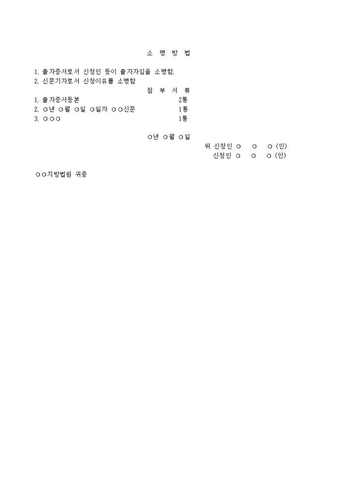 신청인 등이 ○○○○회의 업무 및 재산상태를 검사할 것을 허가요청할 때 사용하는 .