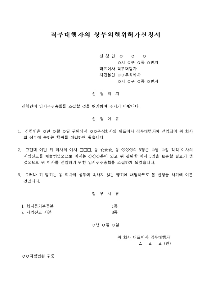 9,000원/월직무대행자의 상무외행위허가신청서 예제 입니다.