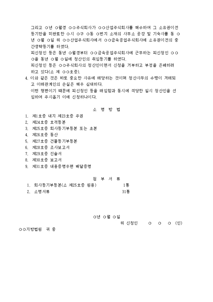 9,000원/월주식회사의 청산인 을 해임하고 회사의 일시청산일을 선임을 요청할 때 사용하는 주식회사청산인해임 및 일시청산인선임신청서양식입니다.