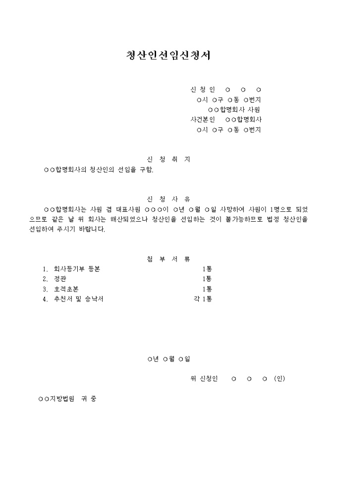합명회사 청산인 선임신청서