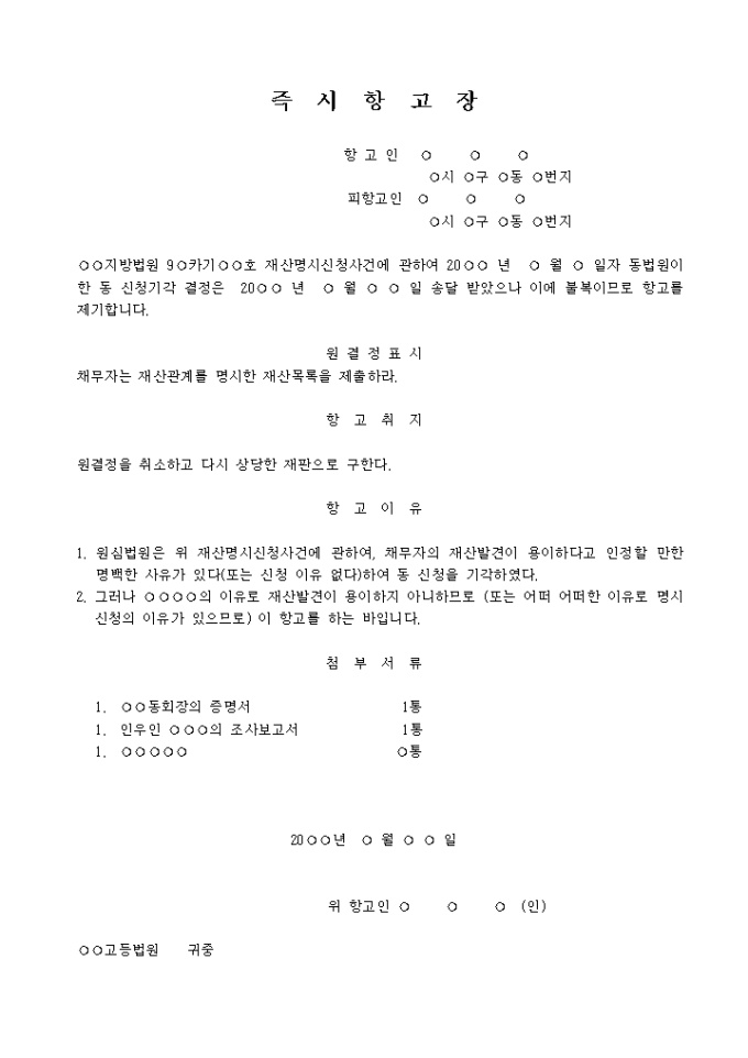 9,000원/월명시신청기각결정에 대한 즉시항고장 예제 입니다.