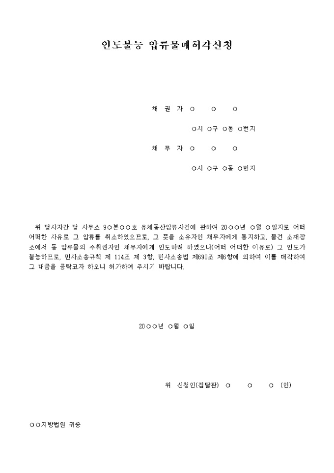 9,000원/월인도불능 압류물매각허가신청서 입니다.
