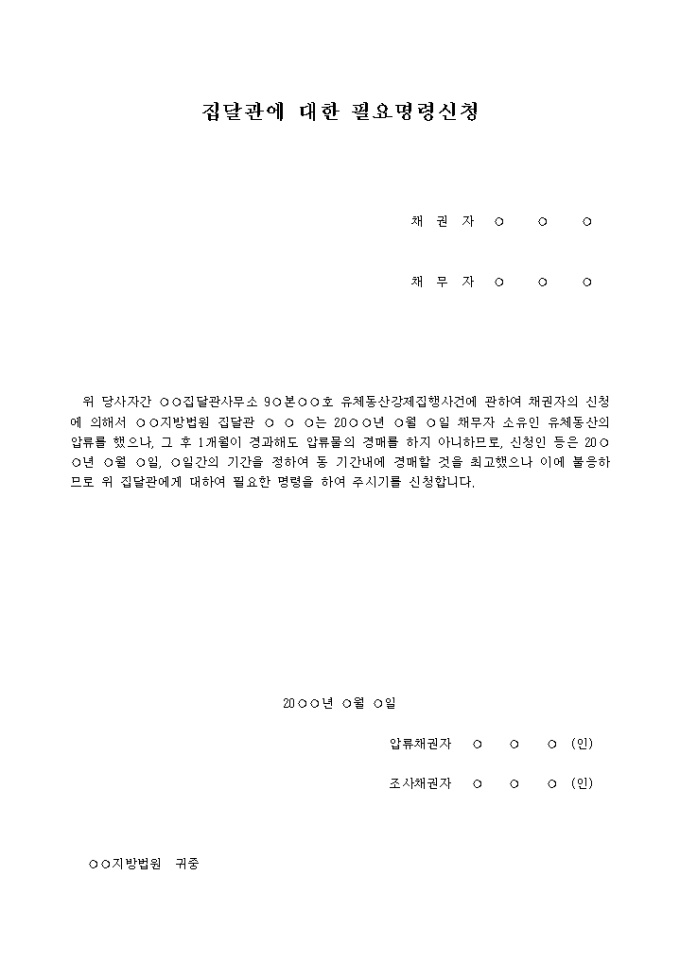 9,000원/월집달관에 대한 필요명령신청서 입니다.