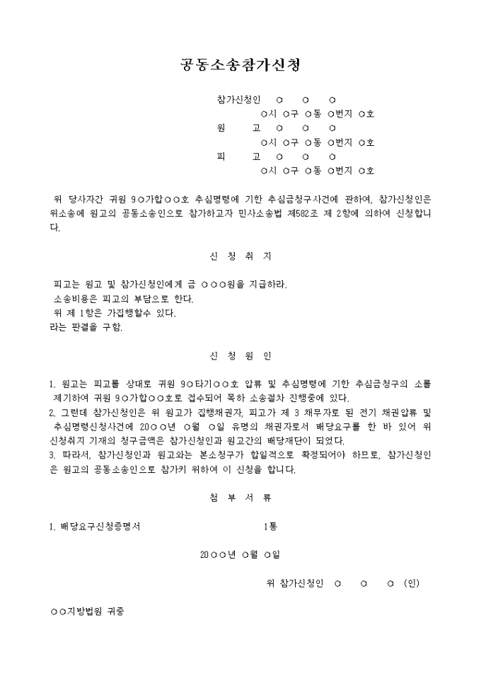 공동소송 참가신청서(3개항)