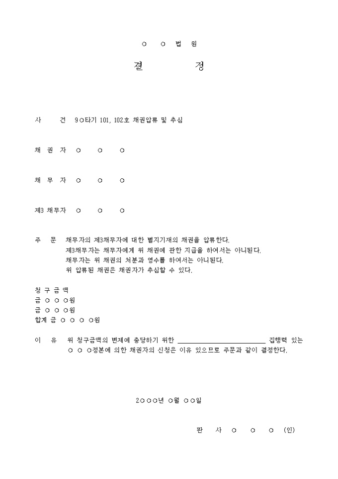 제3채무자는 채무자에게 위 채권에 관한 지급을 하여서는 아니된다.
