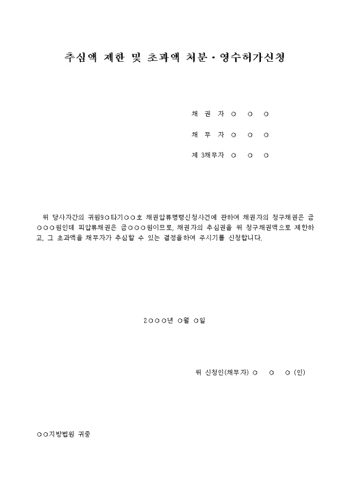 추심액제한 및 초과액 처분,영수허가신청서 입니다.