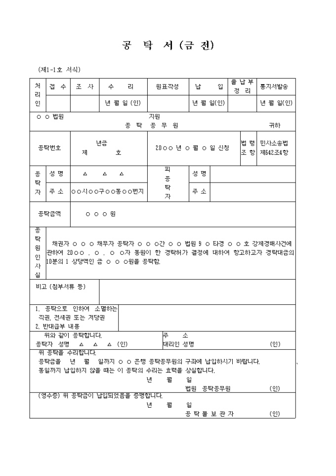 채권자 ○ ○ ○ 채무자 공탁자 ○ ○ ○간 ○ ○ 법원 9 ○ 타경 ○ ○ 호 강제경매사건에