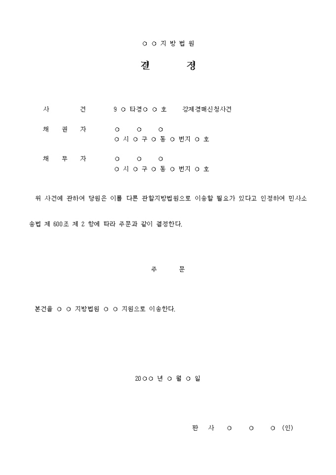 9,000원/월관련법원에의 직권이송결정서 입니다.