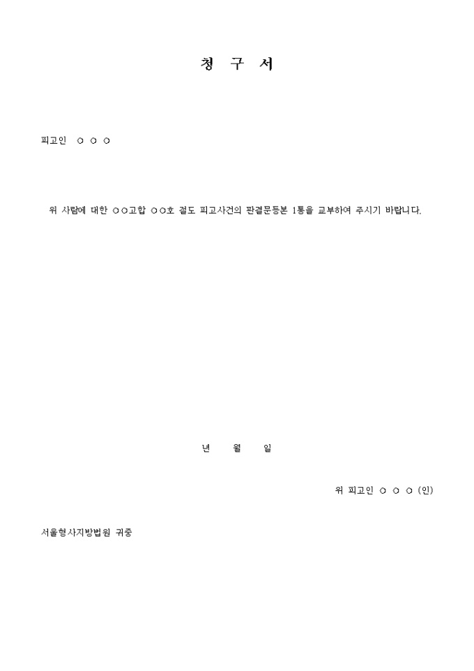 판결문등본교부 청구서