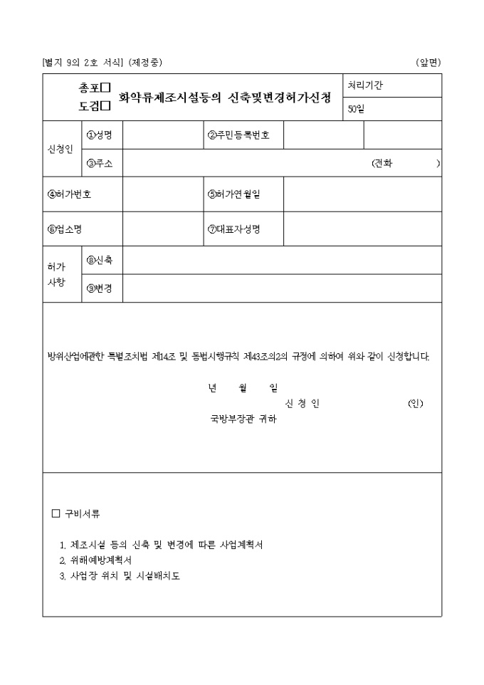 총포, 도검, 화약류제조시설등의신축 및 변경허가신청