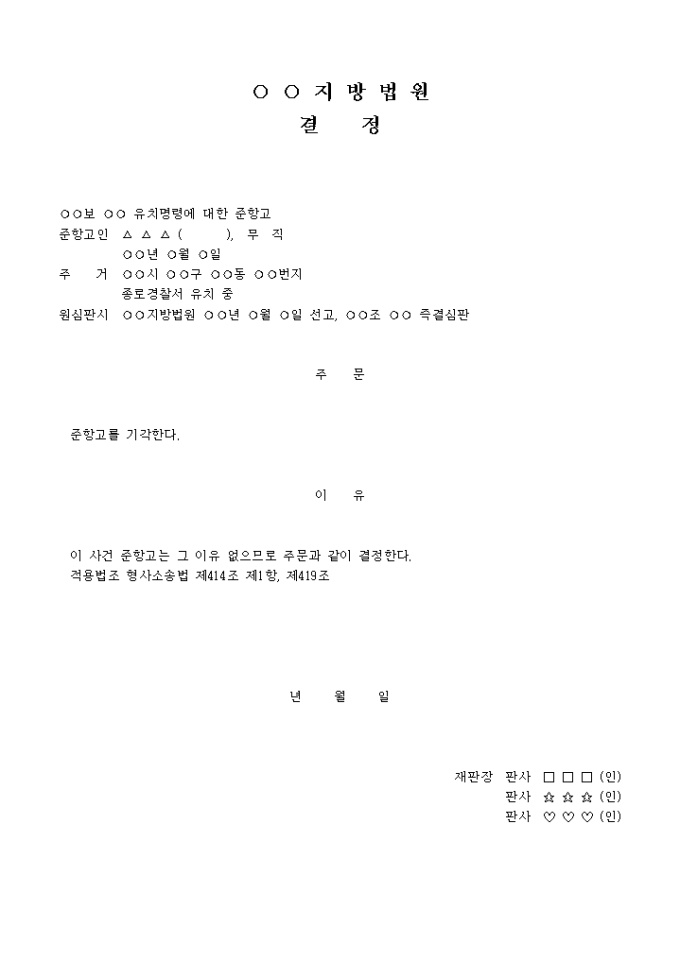 9,000원/월유치명령준항고기각결정 입니다. 주 문 준항고를 기각한다. 이 유 이 사건 준항고는 그 이유 없으므로 주문과 같이 결정한다. 적용법조 형사소송법 제414조 제1항, 제419조 ...