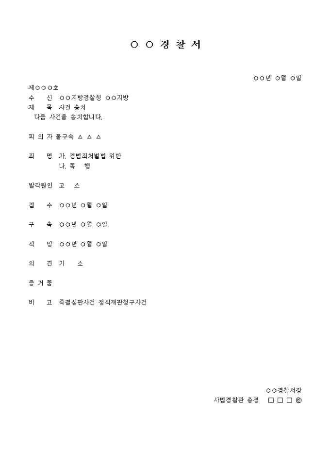 즉결사건 송치서(경찰)